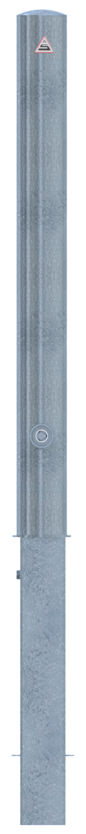 Der Absperrpfosten besteht aus einem Stahlrohr Ø 89 x 2,9 mm und ist mit einer aufgeschweißten Stahlkappe ausgestattet. Mit einer Höhe von 900 mm Überflur ist er deutlich sichtbar.