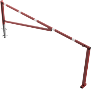 Diese horizontal schwenkbare Drehschranke kommt mit zwei Auflagepfosten. Sie bietet eine Verriegelung der geöffneten und geschlossenen Schranke am jeweiligen Auflagepfosten. Zudem gibt es eine Verriegelungsmöglichkeit für Vorhangschloss, Dreikantverschluss nach DIN 3223 oder Profilzylinderschloss.