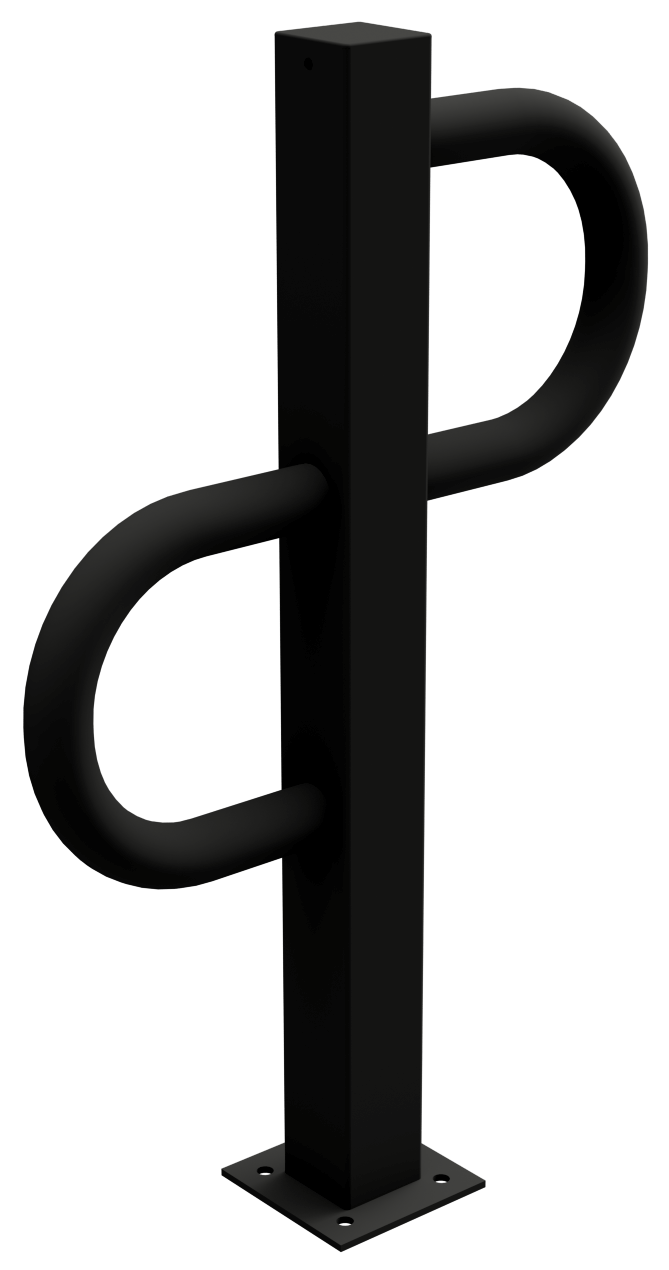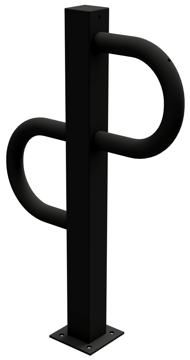 Fahrradständer-Einzelparkernaus Vierkantrohr 80x80x3mm, Höhe: 900mmnverschweißt mit Bodenplatte 150x150x6mmnmit seitlichen Bügeln aus Ø48,3×2,5mmnver