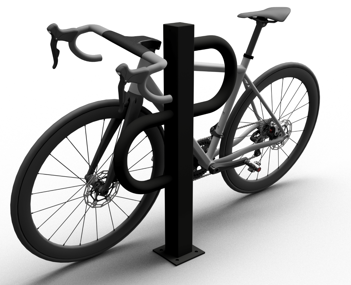 Dieser Fahrradständer Einzelparker ist zum Aufdübeln konzipiert. Er besteht aus einem robusten Vierkantrohr mit den Maßen 80×80 mm. Mit einer Höhe von 800 mm bietet er ausreichend Platz für Ihr Fahrrad.