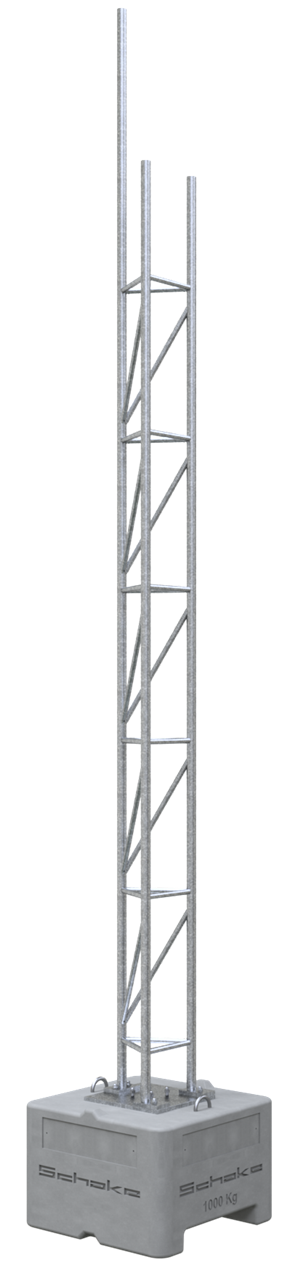 Dieses Gitterrohrmast SET 1 beinhaltet drei primäre Bestandteile. Der Satz besteht aus einer Beton-Aufstellvorrichtung (Art.-Nr. 3F121), einer Adapterplatte für Gitterrohrmast (Art.-Nr 3F120-2) und natürlich dem zentralen Element, dem Gitterrohrmast (Art.-Nr. 353016). Alle Teile sind präzise aufeinander abgestimmt, um eine optimale Leistung und Haltbarkeit zu gewährleisten.