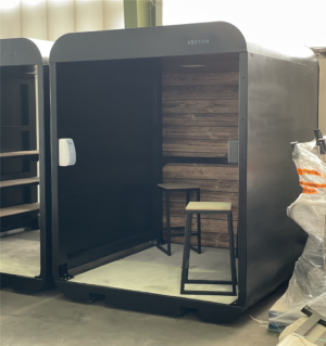 Die V-Lounge ist ein mobiler Aufenthaltsraum, perfekt für kurze Besprechungen oder Rauchpausen. Dank Staplertaschen und Kranösen ist sie leicht versetzbar, und kann sowohl mobil als auch stationär eingesetzt werden.