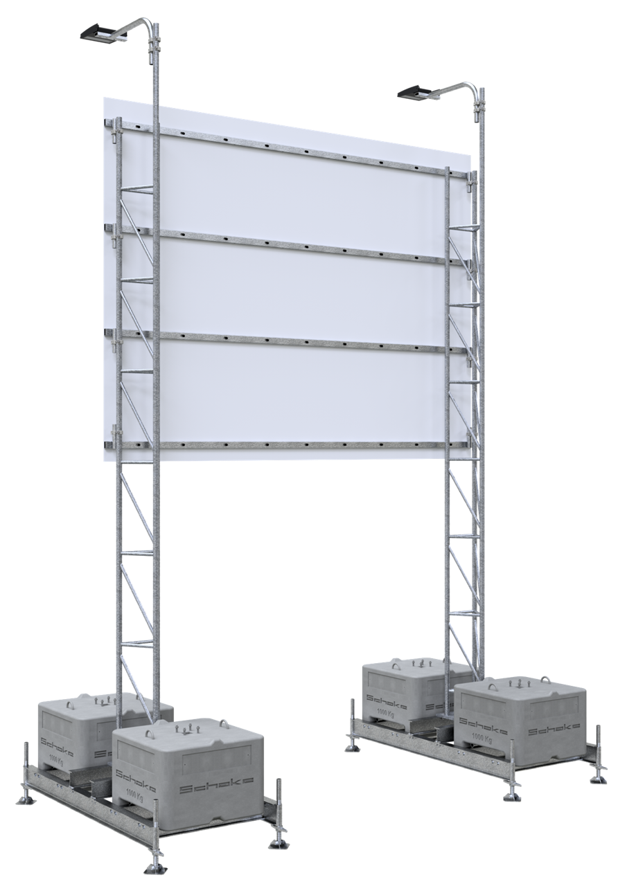 Dieser Werbemast ist eine umfangreiche Aufstellvorrichtung für eine Werbetafel mit den Maßen 5,00 x 3,00 m. Der Lieferumfang umfasst: 2 x Aufstellrahmen, verzinkt (Art.-Nr. 35350)